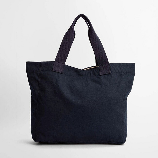 ビーチに行く時も、毎日の必需品をまとめて収納したい時も、あらゆるものを収納できるスペースを備えています。コントラストのあるウェビングハンドルと、前面にあしらわれたバーシティ風のロゴが特徴で、普段使いに最適です。