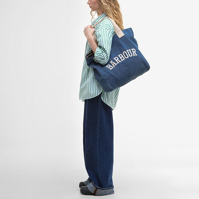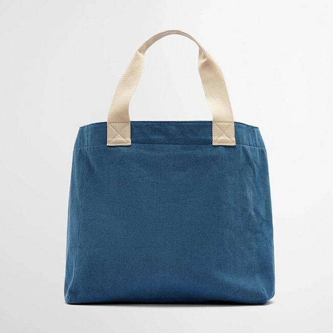 ビーチに行く時も、毎日の必需品をまとめて収納したい時も、何でも入る収納力です。コントラストの効いたウェビングハンドルと、フロントにあしらわれたバーシティ風のロゴが特徴で、普段使いに最適です。