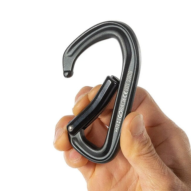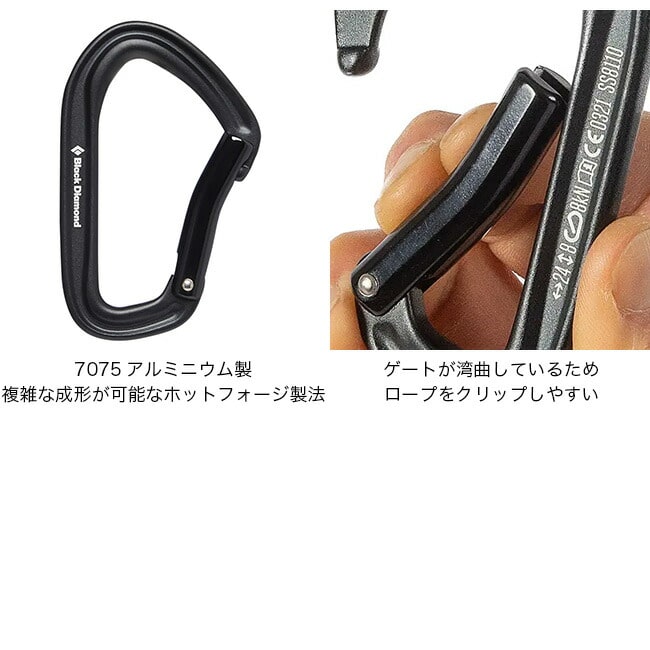 クイックドローのロープクリップ側に使用します。ゲートが湾曲しているためロープをクリップ(掛ける)しやすいのが特徴です。