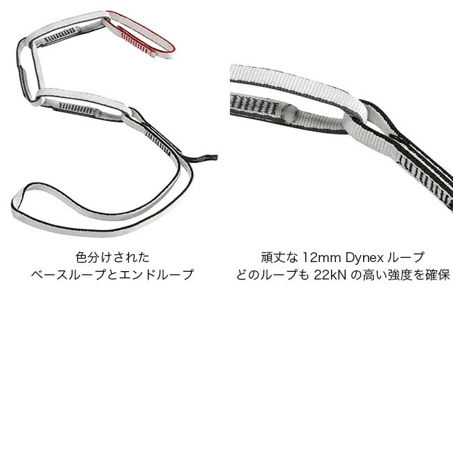 また、頑丈な12mm Dynex構造により、どのループを使用しても22kNの高い強度を確保。