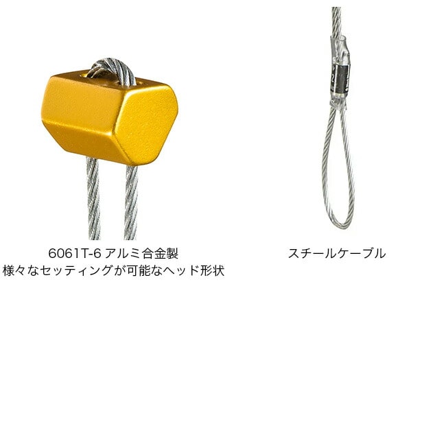 耐久性に優れた亜鉛メッキスチールケーブルを採用し、信頼性の高いクライミングプロテクションとして長く使用できます。