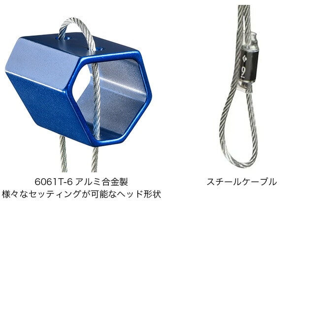 耐久性に優れた亜鉛メッキスチールケーブルを採用し、信頼性の高いクライミングプロテクションとして長く使用できます。