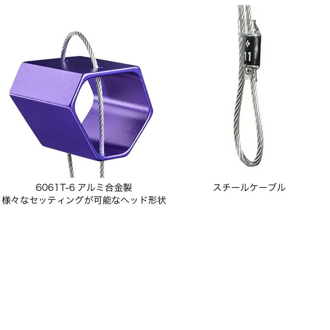 耐久性に優れた亜鉛メッキスチールケーブルを採用し、信頼性の高いクライミングプロテクションとして長く使用できます。