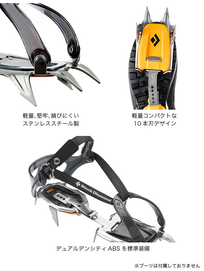 軽量かつ収納性に優れ、冬の低山、スキー登山、スノーハイク等に適した10本刃クランポン。