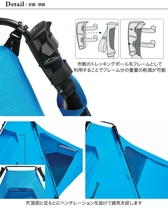 付属のアダプターで市販のトレッキングポール(別売)をDACクロスポールに接続してフレーム分の重量を削減できます。