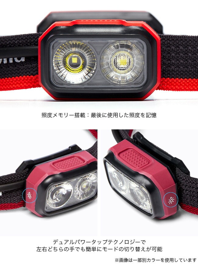 シンプルなワンボタンスイッチとヘッドランプ左右のデュアルパワータップテクノロジーで、左右どちらの手でも簡単にモードの切り替えが可能。