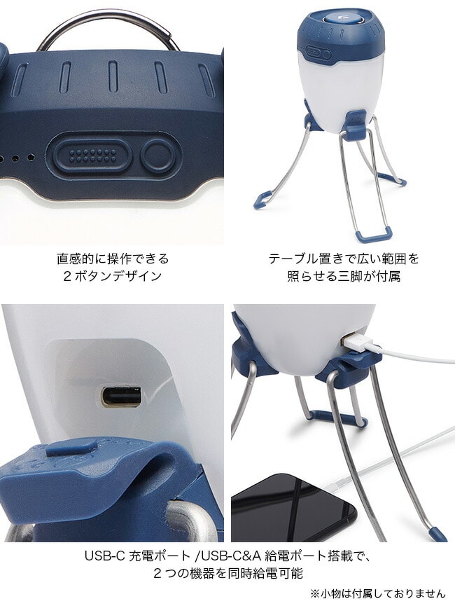 テーブル置きで広い範囲を照らせる三脚が付属。