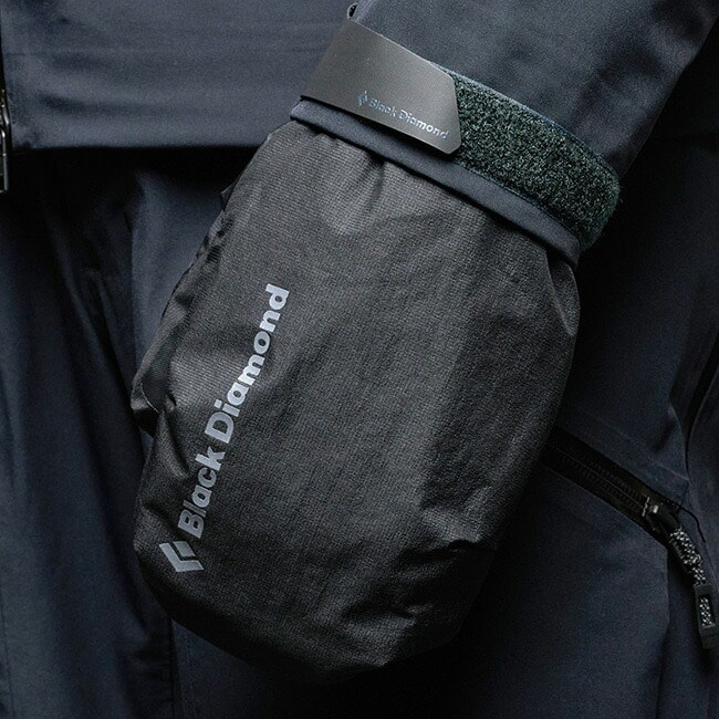 中綿入りソフトシェルに中綿入りの収納式フードを組み合わせたツーリンググローブ