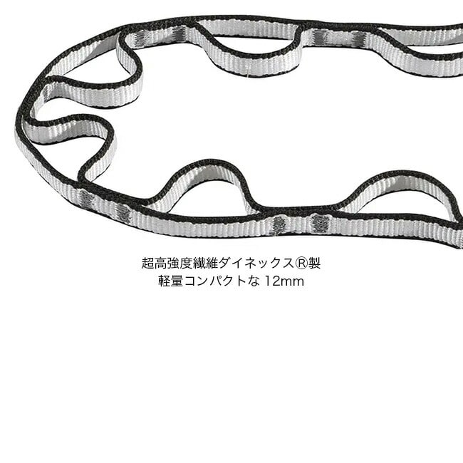 エイドクライミングでエイダーと組み合わせ、クライマーとプロテクションとの間隔を調節をするためのデイジーチェーン。軽量コンパクトな12mmダイネックス®製。