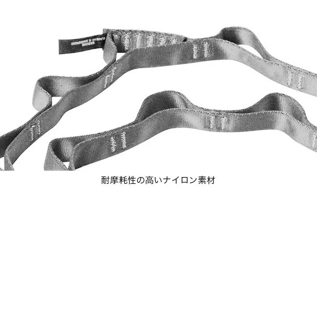 ボトムループにはハーフツイスト縫製を採用し、ガースヒッチ時の収まりを向上。