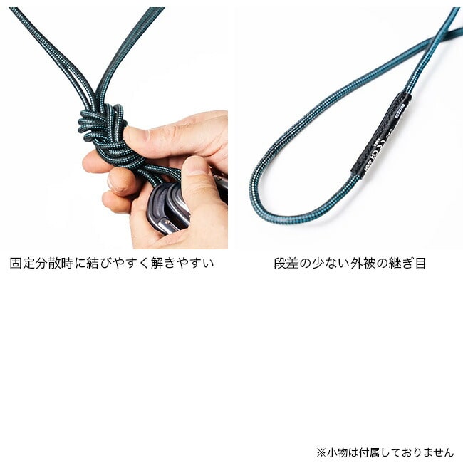 継ぎ目のない特殊な構造のダイネックスコアを、丈夫なダイネックス/ナイロン混紡の外被で保護。結びやすく荷重が掛かっても解きやすいので、固定分散のビレイ点を素早く構築/回収できます。