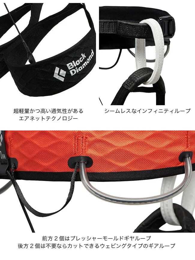 ・超軽量かつ高い通気性がありながら、フォール時の荷重を均等に分散し快適さも確保するエアネットテクノロジー
