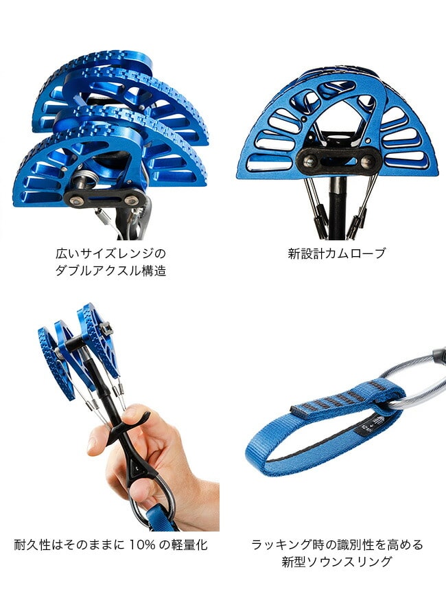 1987年の登場以来、トラッドクライミングの定番として世界中で信頼されてきたカム型プロテクション。優れた強度と軽量性のバランスを備え、あらゆるクラックに対応するスタンダードモデルです。