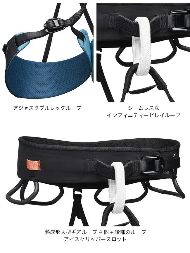 長距離・長時間のクライミングでの快適性を追求したオールシーズン対応ハーネス