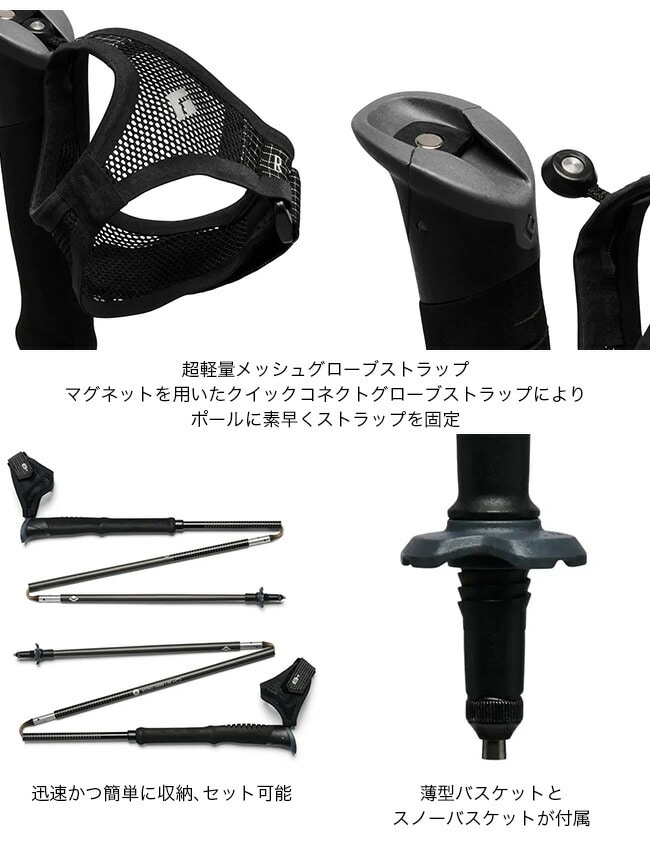 マグネットを用いたクイックコネクトグローブストラップにより、ポールに素早くストラップを固定でき、リリース時はボタンを押すだけ。