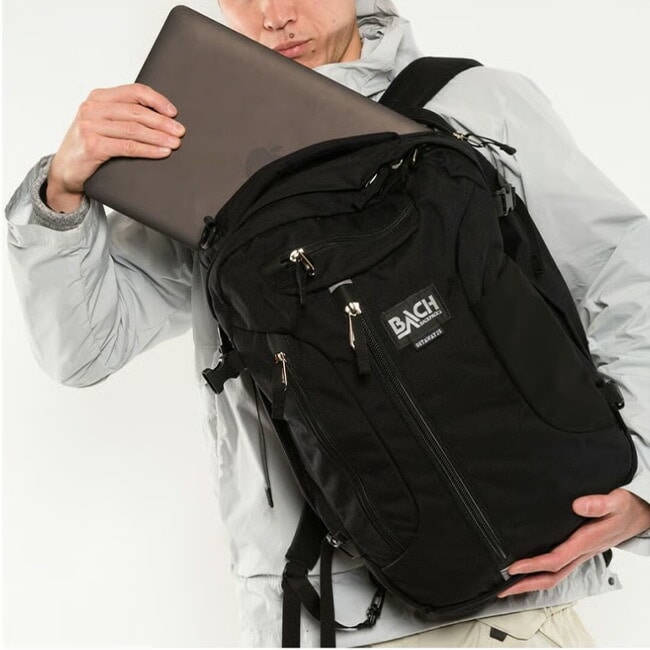 メインコンパートメントにはメッシュポケットやファスナー付きの仕切りもあり、ダイレクトにアクセスできるPCスリーブも確保。