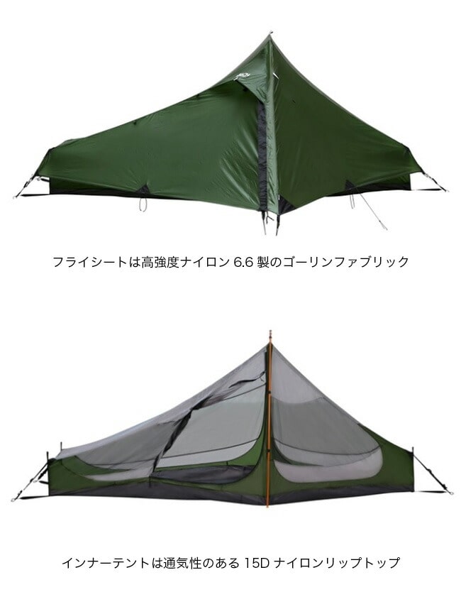 フライシートは、高強度ナイロン6.6製のゴーリンファブリックを使用。