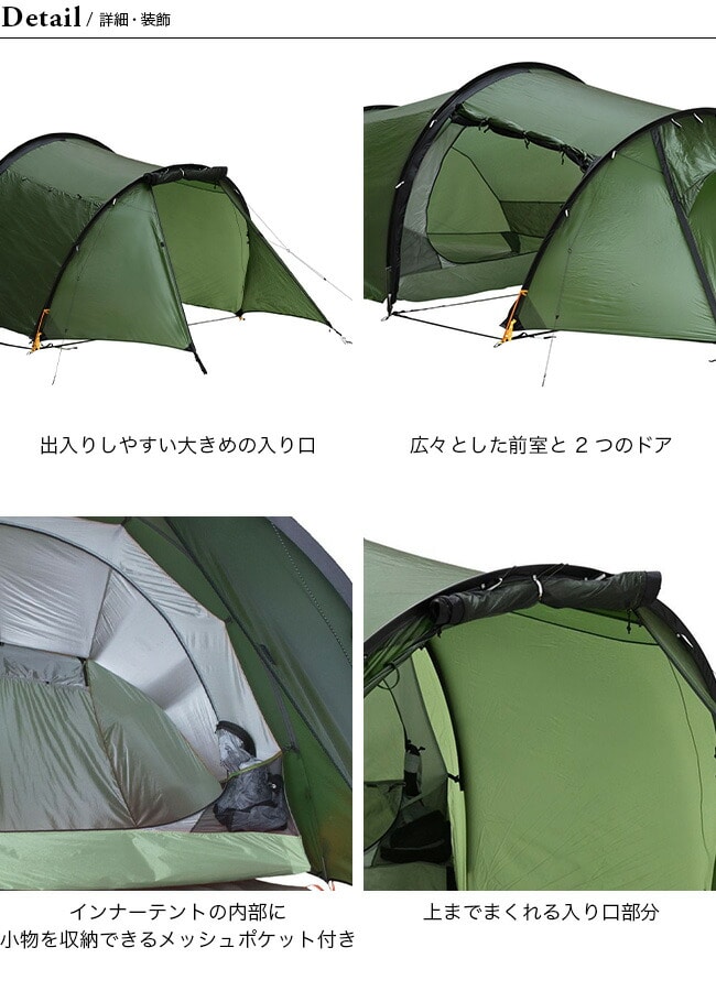 インナーテントは外側の防水テントに取り付けられたままなので、嵐の日でも簡単にセットアップでき、家族や友人とのスカンジナビアやカナダのトレッキングアドベンチャーに最適です。