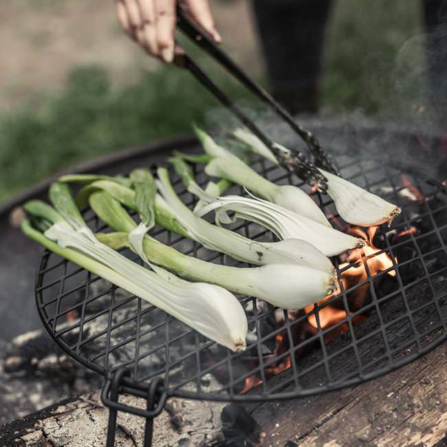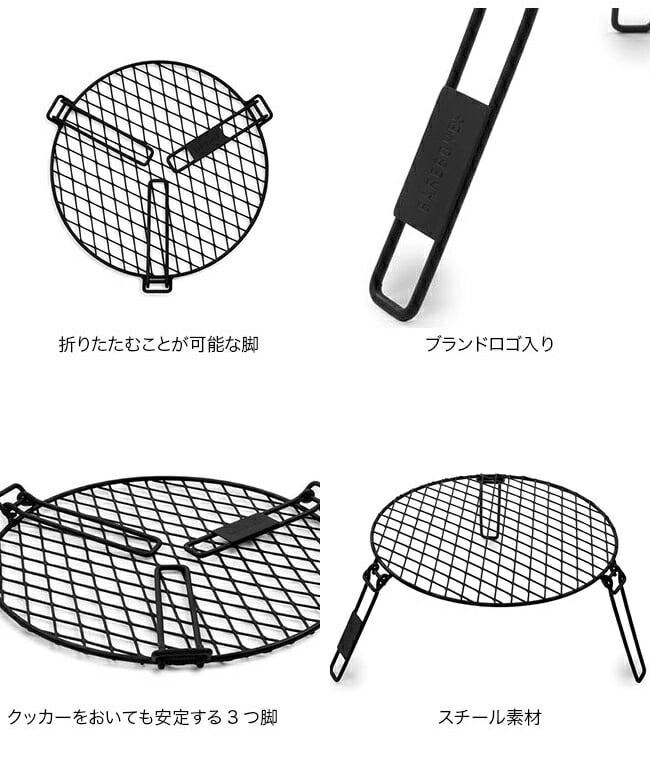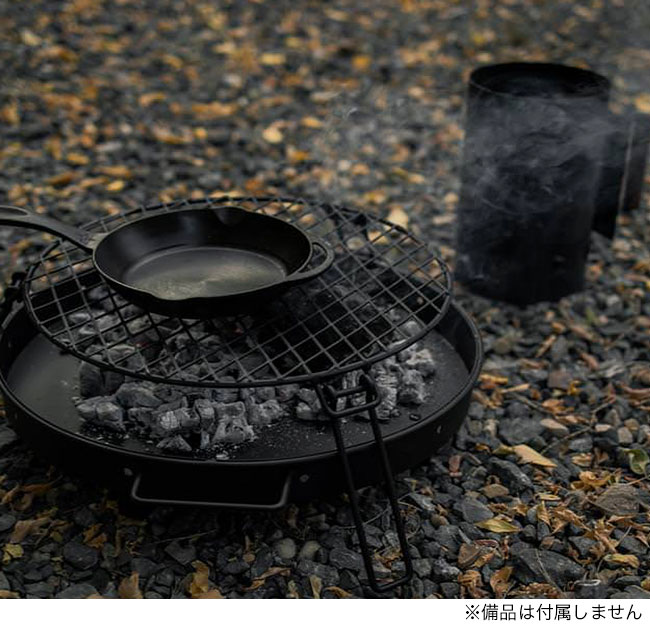 焚火台の上にそのまま載せて使用する、円形のグリル網です。