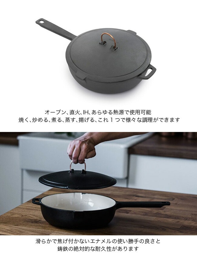 滑らかで焦げ付かないエナメルの使いやすさと、フライパンやポットの外側に施された鋳鉄の絶対的な耐久性を楽しむことができます。