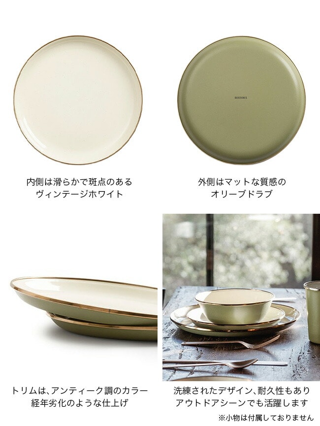 ホーロー加工のされたこのプレートは、洗練されたデザインで耐久性もあるので、アウトドアシーンでも活躍します。