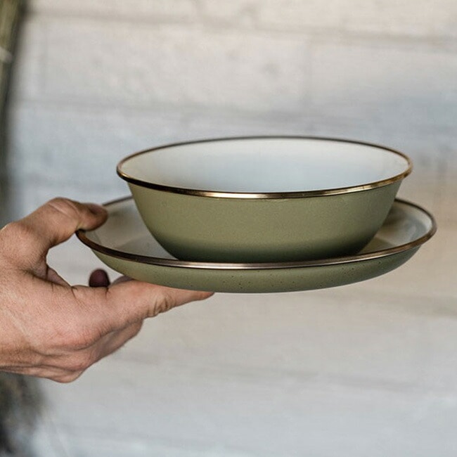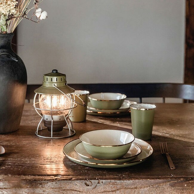 ホーロー加工のされたこのサラダプレートは、洗練されたデザインで耐久性もあるので、アウトドアシーンでも活躍します。