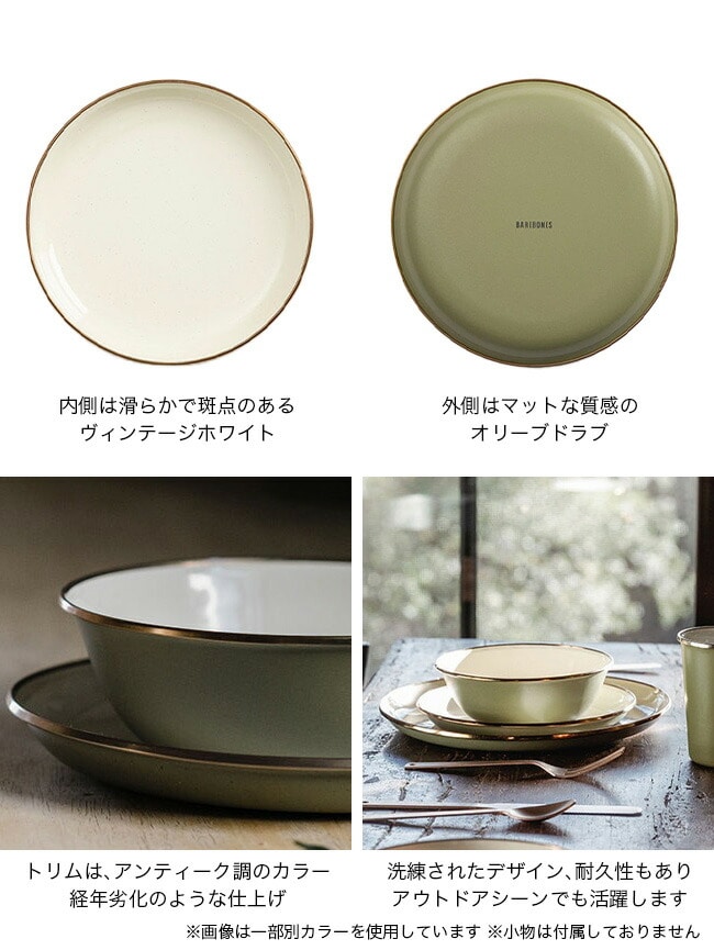 ※エナメルウェアのリムは熱処理され、ブロンズのような緑青仕上げが施されています。プレートの表面と縁は、レモンなどの酸性の食品や、強力な洗剤やクレンザーによって、その独特の色が剥がれてしまうことがあります。