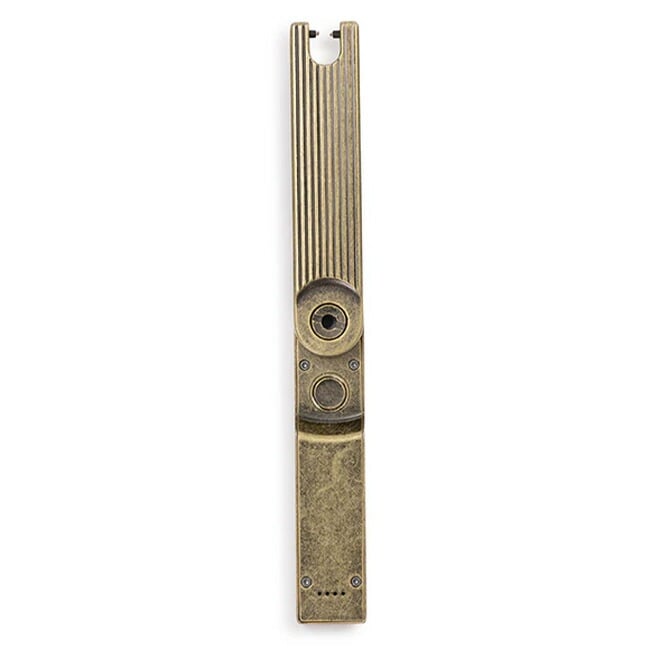 ピボットアーム(折り畳み式)デザインで、保管の際はコンパクトに、着火の際は伸ばして使用する設計です。