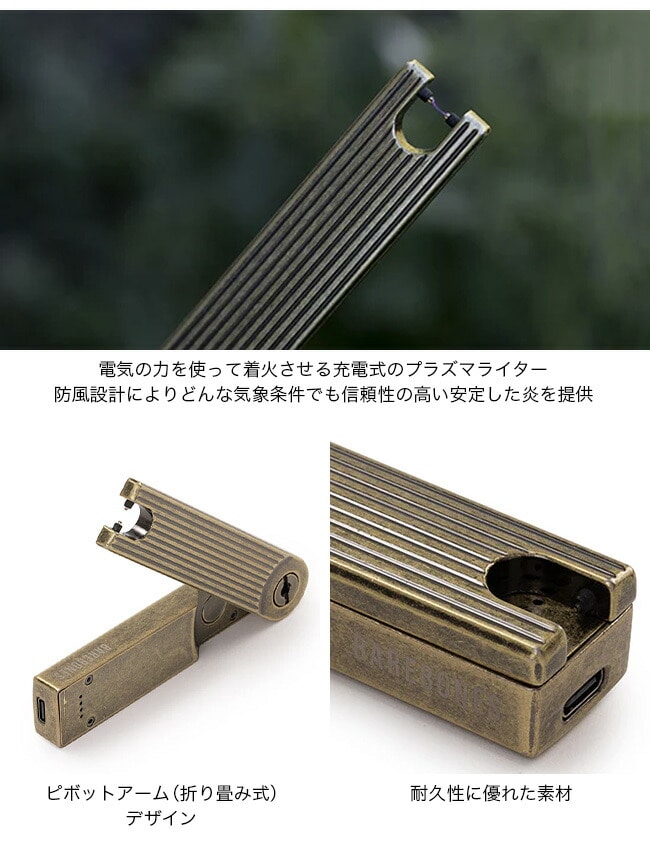 一般的なライターは燃料を使用して火花を発生させますが、プラズマライターは電子プラズマを用いるため、風の影響を受けにくく、風の強い環境や湿度の高い場所で優れた性能を発揮します。キャンプやアウトドアシーンにはもってこいのアイテムです。