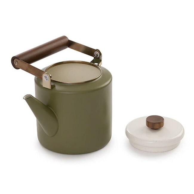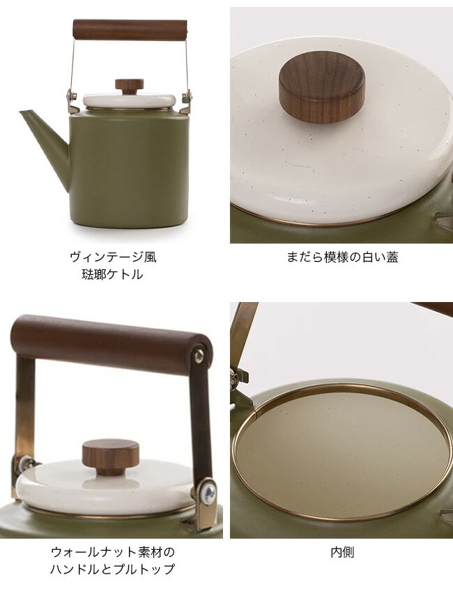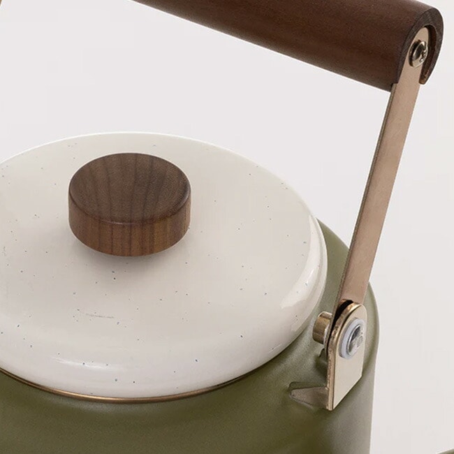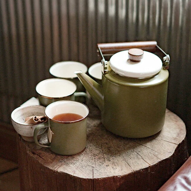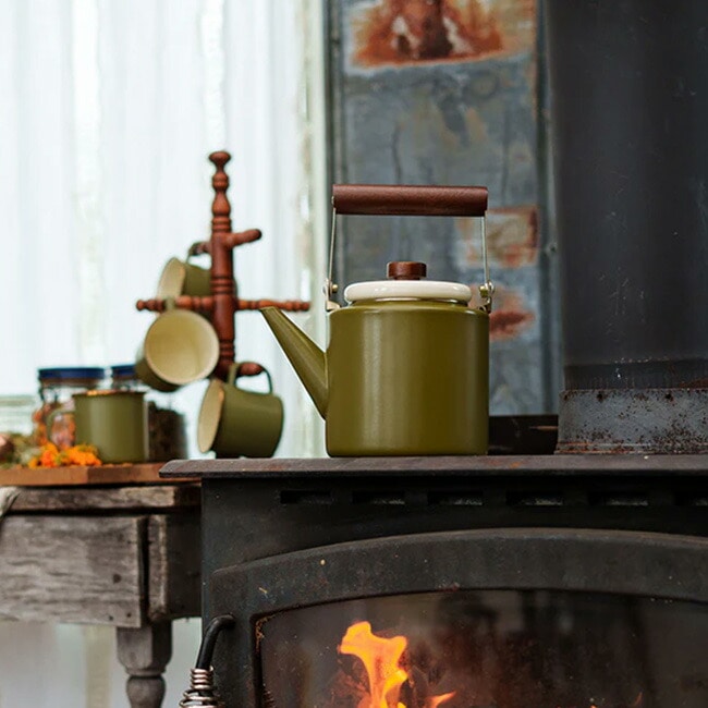 ホーロー加工のされたこのケトルは、洗練されたデザインで耐久性もあるので、アウトドアシーンでも活躍します。