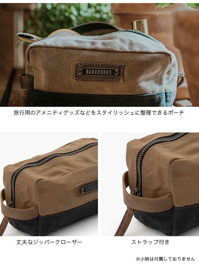旅行用のアメニティグッズなどをスタイリッシュに整理できるポーチです。
