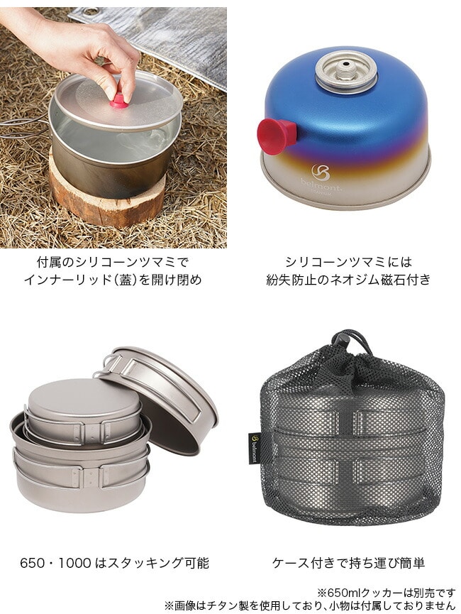 持ち運びに便利なアルミ製のクッカーセット(1000ml)