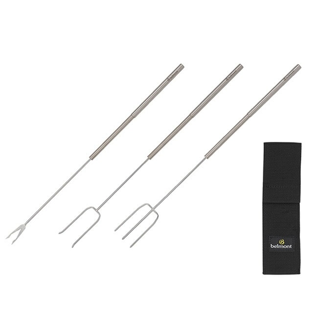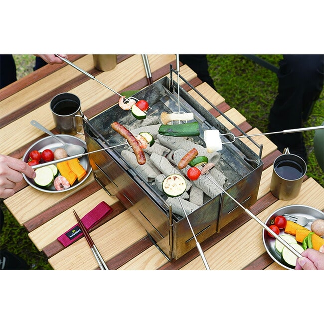 二本串にはウインナーやマシュマロ、三本串には複数の食材や塊のお肉などを刺して楽しいBBQの時間を演出します。フォンデュ串でチーズフォンデュやチョコレートフォンデュなど、お家の中でも使って楽しめるアイテムです。