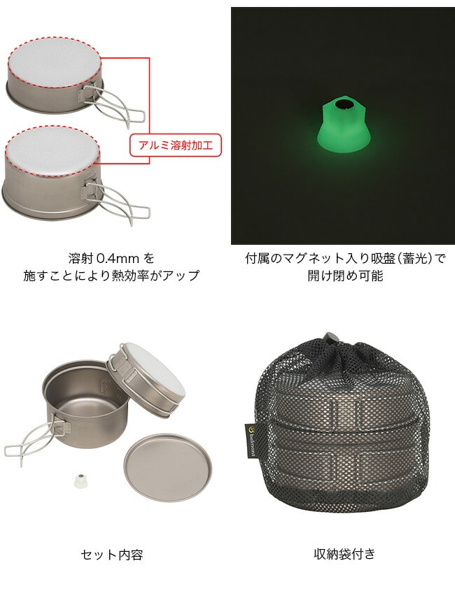 チタントレールクッカーにアルミ溶射加工(0.4mm)を施し、熱効率と調理性を向上させた軽量クッカー