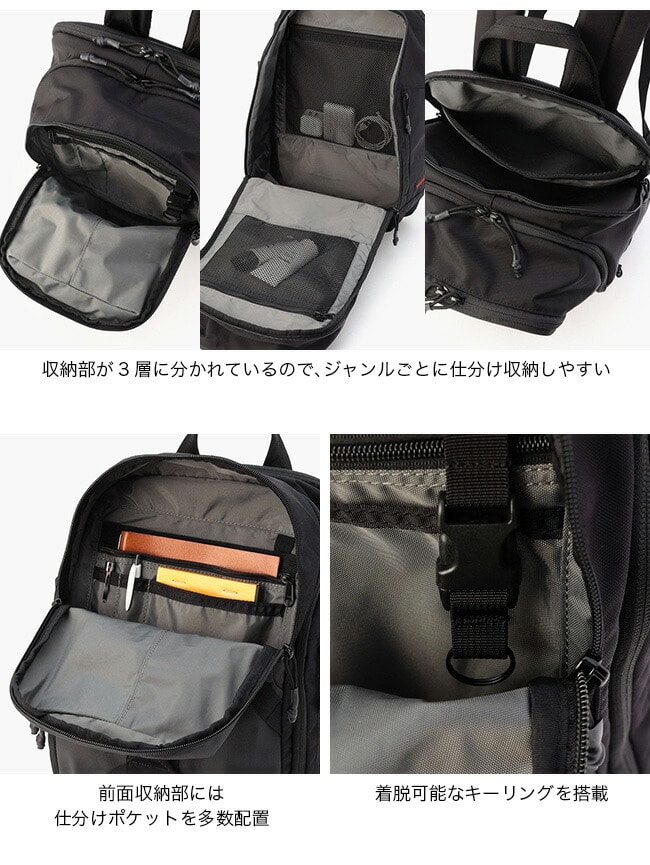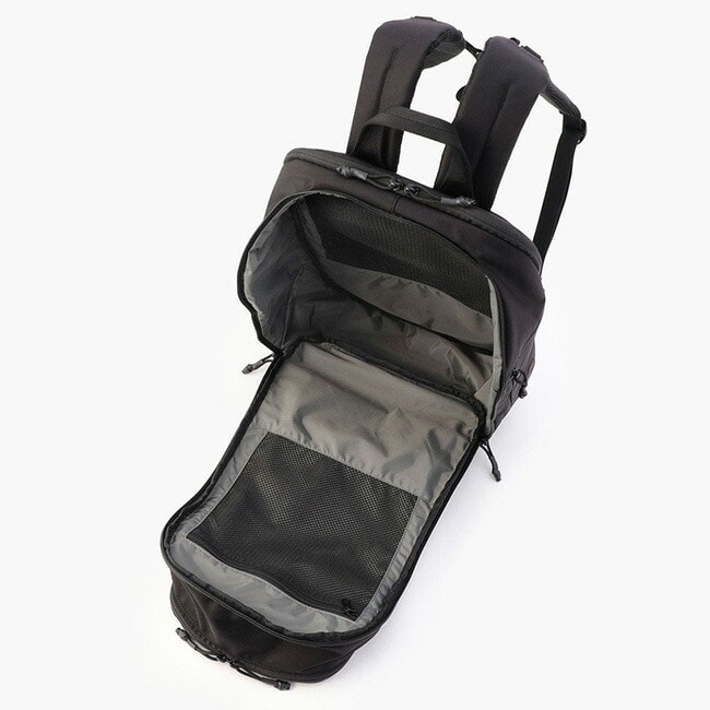 内部は3層構造で、クッション材を備えた16インチ対応のPCスリーブをはじめ、大小さまざまなポケットを配置。