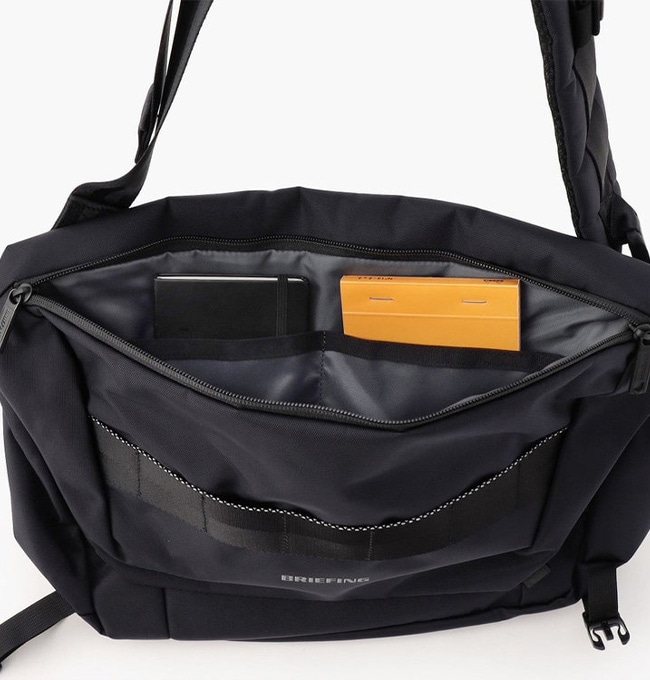 フロントに配したBRIEFINGロゴはリフレクターを採用しており、夜間の移動ではリフレクター部分が反射し、視認性に優れます。