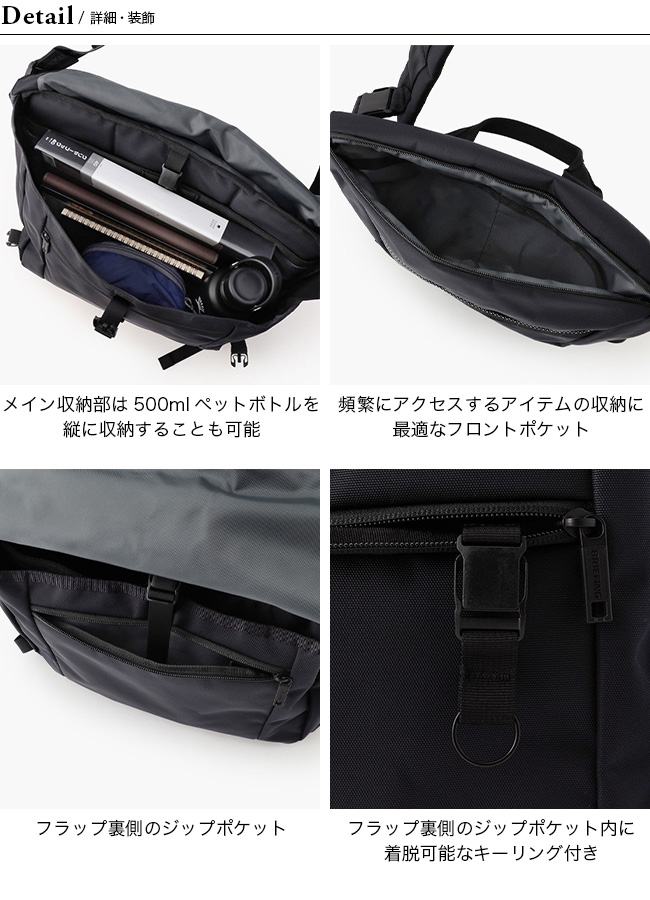 フラップのサイズを大きめに設定し、突然の雨等でも収納部に水が入ることなく使用することが可能。
