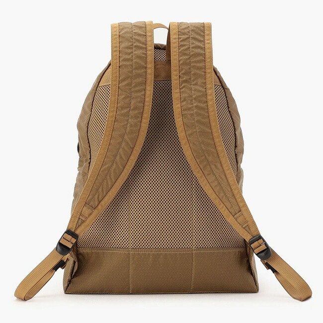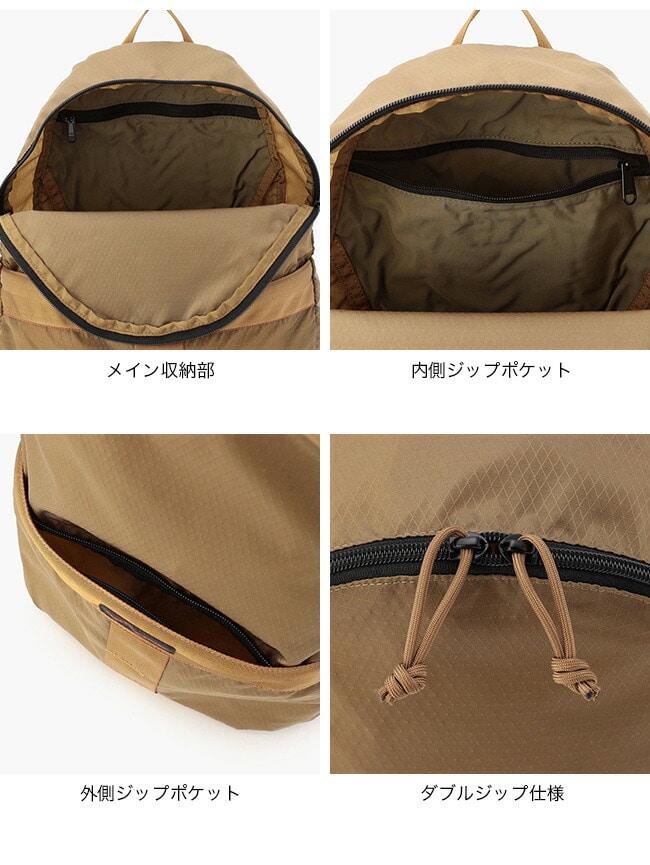 旅行や普段使いにぴったりのシンプルなデザインと、コンパクトに折り畳んで持ち運べる携帯性はそのままに、素材を一新したバックパックです。メイン素材には、コーデュラ糸と同等の強度を持つ高機能糸「ROBIC」を使用し、オリジナルで織り上げたダイヤリップ生地を採用。