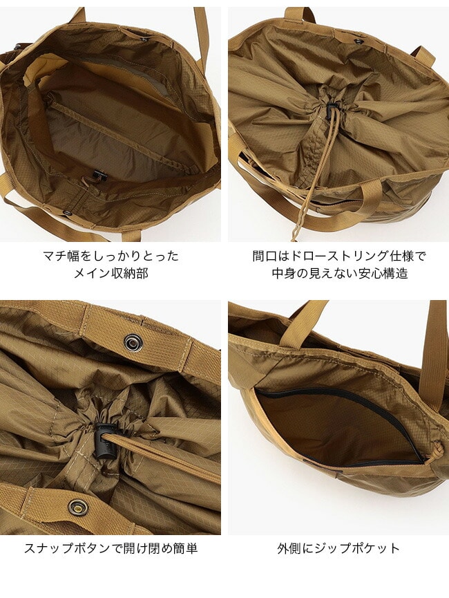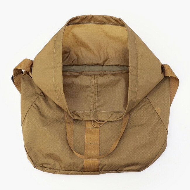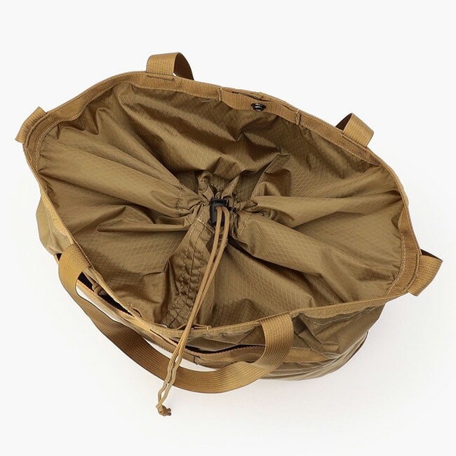 シンプルなデザインと、折り畳んで携帯できる便利さはそのままに、素材をアップグレードした2WAYパッカブルバッグ。メイン素材には、コーデュラ糸と同等の強度を持つ「ROBIC」糸を使用し、オリジナルで織り上げたダイヤリップ生地を採用。