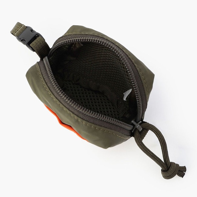 ワイヤレスイヤホンや鍵などの収納にちょうど良いサイジングです。素材には環境に優しいナイロン繊維に、スイスの革新的な技術により開発された繊維用抗ウィルス・抗菌加工を施した「HEIQ VIROBLOCK Recycle RIP(ハイキュ ビロブロック リサイクルリップ)」をメインに使用しています。