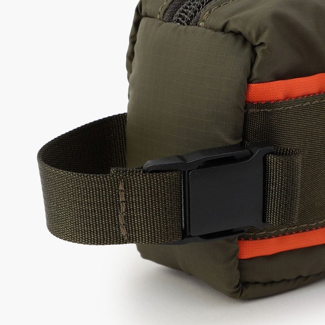 モバイルバッテリーなどの収納にちょうど良いサイジングです。素材には環境に優しいナイロン繊維に、スイスの革新的な技術により開発された繊維用抗ウィルス・抗菌加工を施した「HEIQ VIROBLOCK Recycle RIP(ハイキュ ビロブロック リサイクルリップ)」をメインに使用しています。