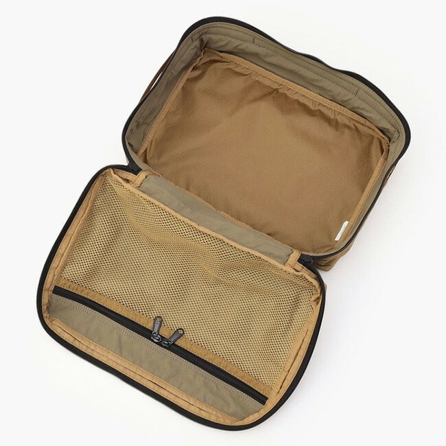内部はシンプルな構造で仕切りをなくし、蓋部分にはメッシュポケットを配置。