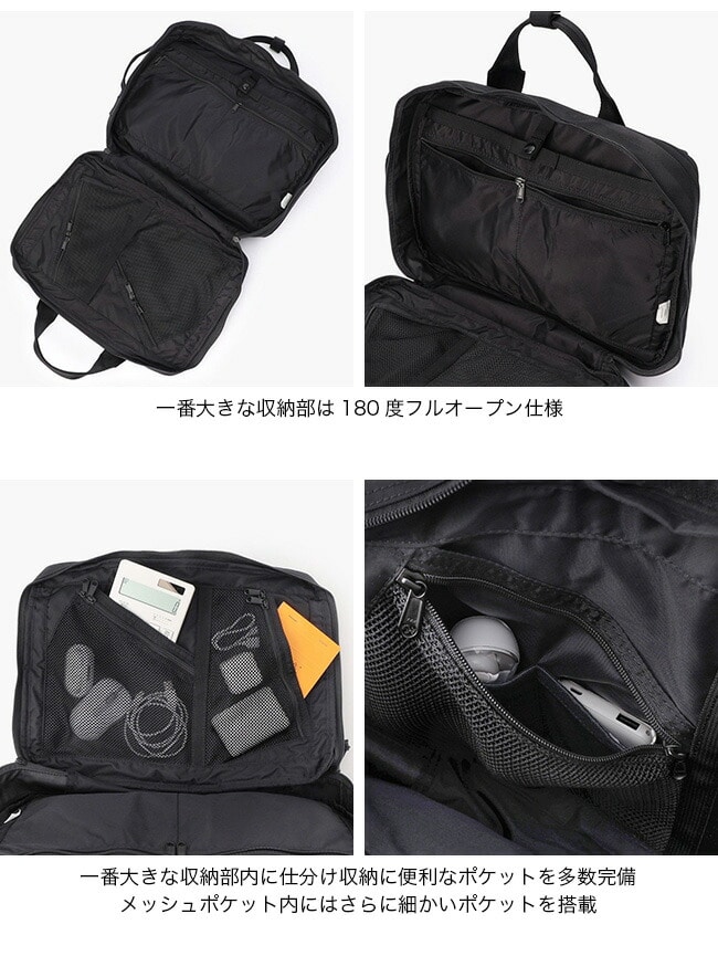 ビジネスシーンでの使いやすさを追求し、ブリーフ・バッグパックどちらの持ち方でもスムーズに荷物を出し入れできるよう、開口部や収納配置を再設計。