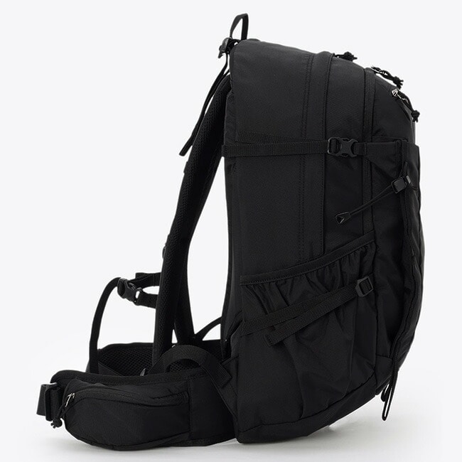 背面内部に肩の荷重を腰に伝え背中全体に分散させる軽量アルミサポートフレームに、面ファスナー仕様で取り外し可能なウエストウィング仕様です。