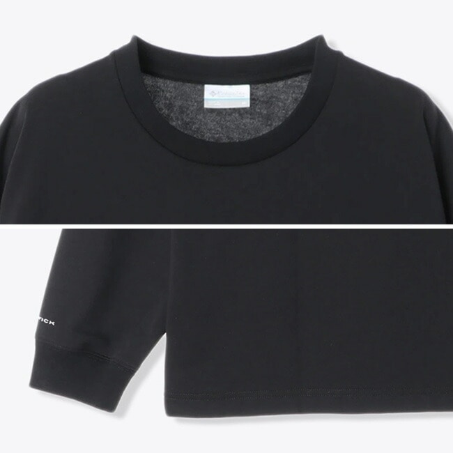 素材には、吸湿速乾性に優れたポリエステルと、肌触りの良いコットンを混紡したTCジャージを採用。コットンのようなナチュラルな風合いを楽しみつつ、アクティブなシーンでも快適な着心地を維持します。