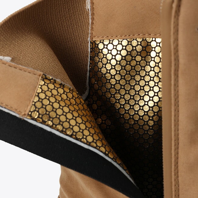 雪でも氷の上でも滑りにくく安心して履ける、サップランドシリーズのサイドファスナー付きブーツ。全天候型のウォータープルーフ仕様に加えて、ライナーに用いた熱反射保温機能「オムニヒートインフィニティ」のゴールドの裏地が、体の熱を反射するため、真冬の寒い日でもシューズ内を暖かく保ちます。