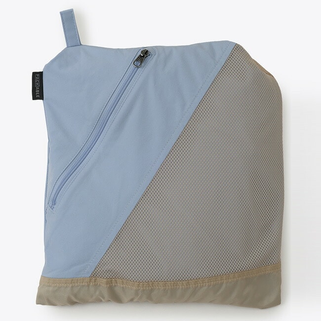 左胸には利便性の高いファスナーポケットを配置し、パッカブル仕様によりコンパクトに折りたたんで持ち運びが可能。