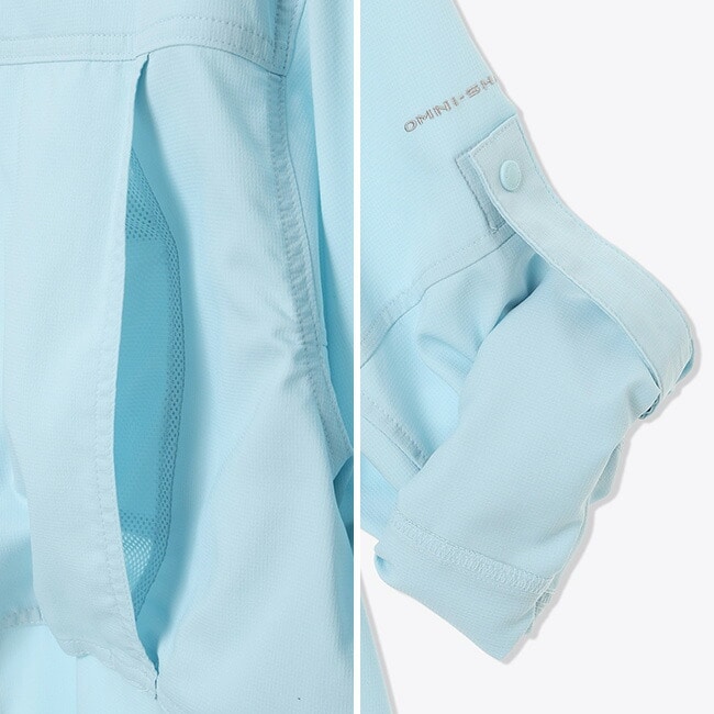 コロンビア独自のサンプロテクション機能オムニシェイドブロードスペクトラム(UPF50)を搭載し、強い日差しから肌をしっかりガード。