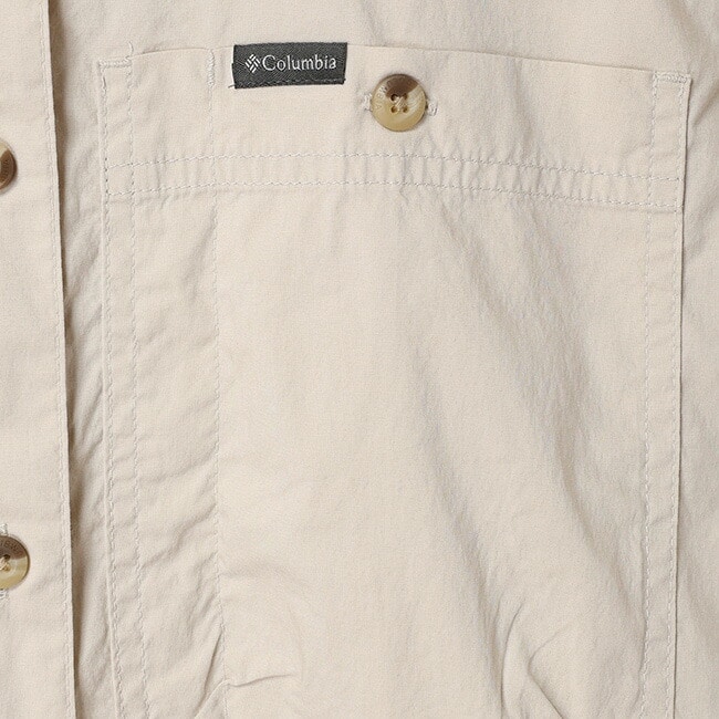 左胸ポケット下にはDリング、左裾内側にはセキュリティーポケットを備え、アウトドアシーンでも使いやすい仕様です。