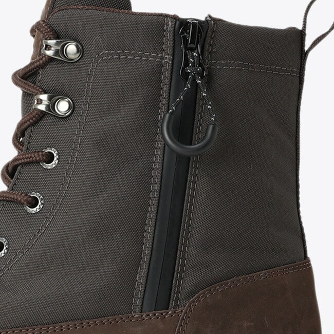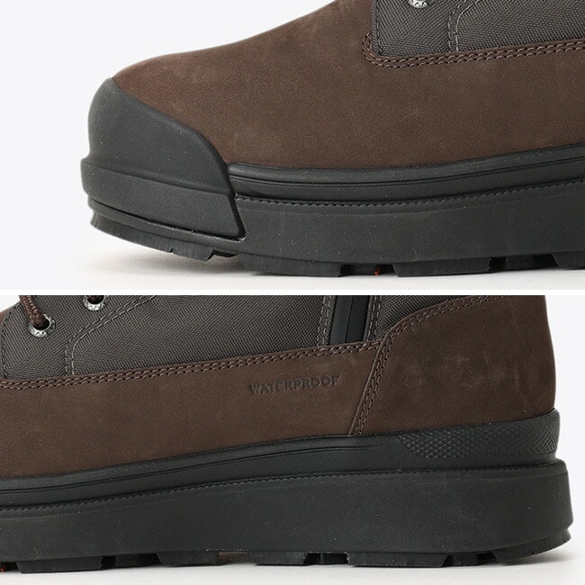 また耐摩擦性、耐久性に優れたコーデュラファブリックを組み合わせることにより、耐久性を高め、さらにウォータープルーフ仕様で雨の日も雪の日も足を濡らさず安心です。